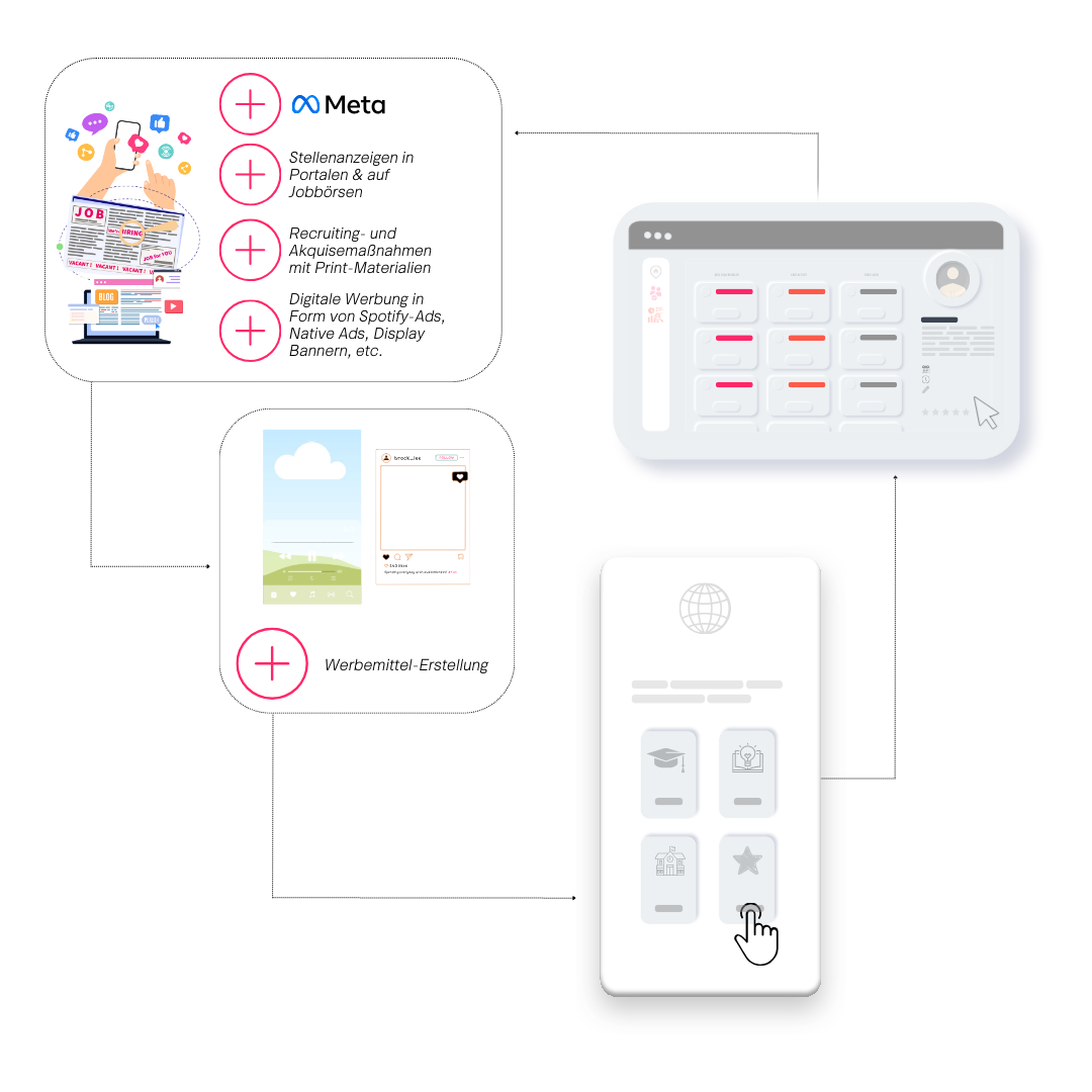 - Landingpage, branchenspezifische Domain, Klickquiz und Bewerber-/ Lead-Managementsystem inkl.